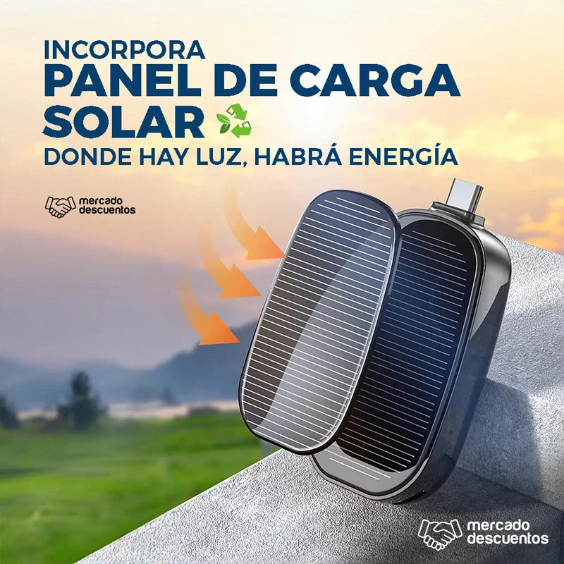Nunca más te quedes sin batería con nuestro cargador solar portable mini 🌞🔋. Ideal para el día a día, se carga con energía solar y es tan pequeño como un llavero.