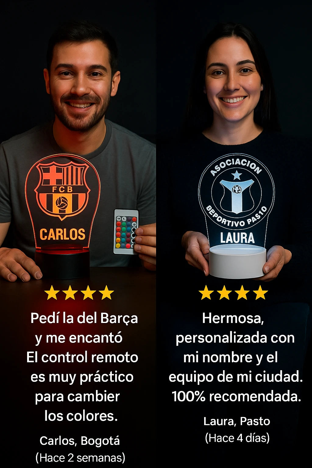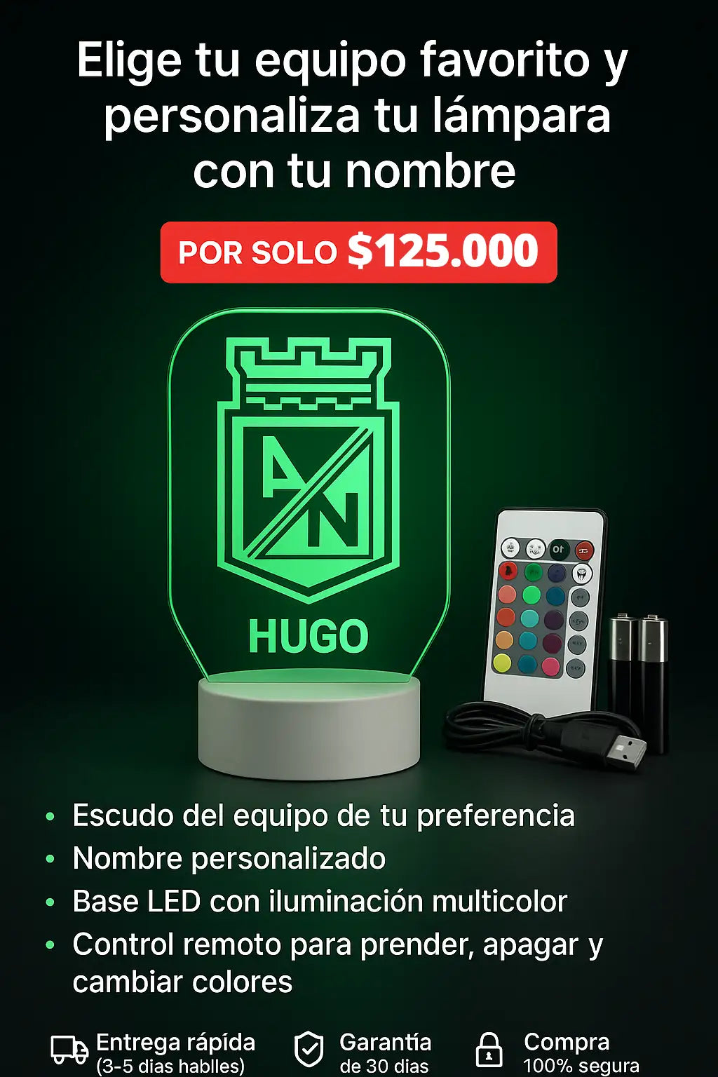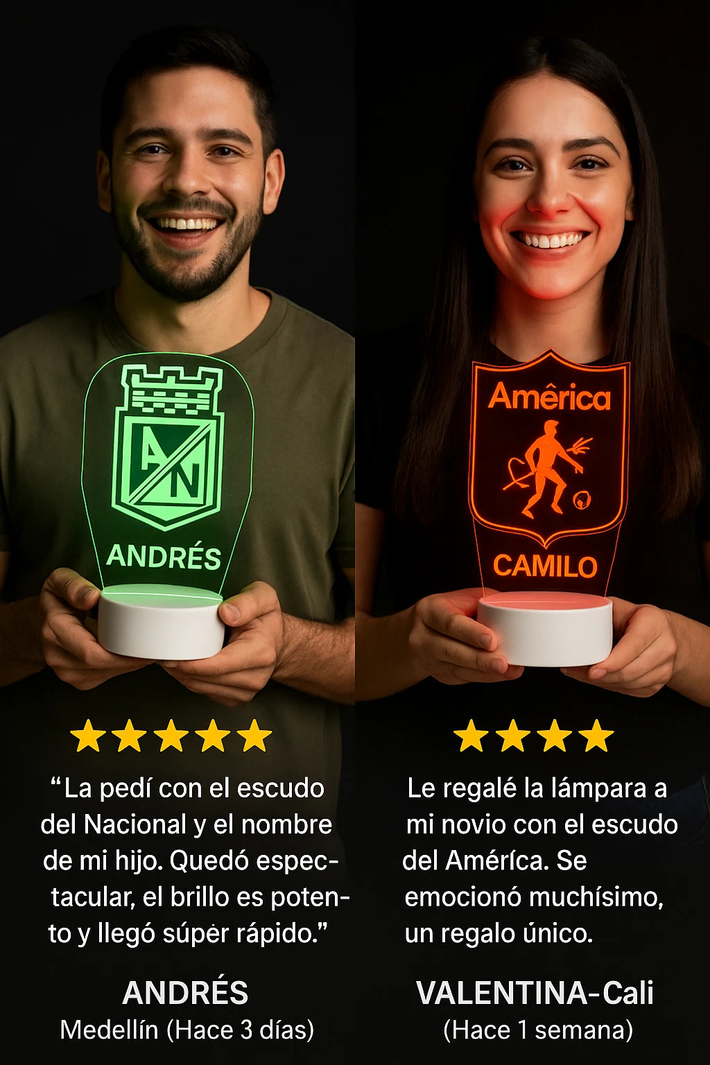 ✅ Sí, hacemos tu lámpara con el escudo de tu equipo favorito y el nombre que quieras.