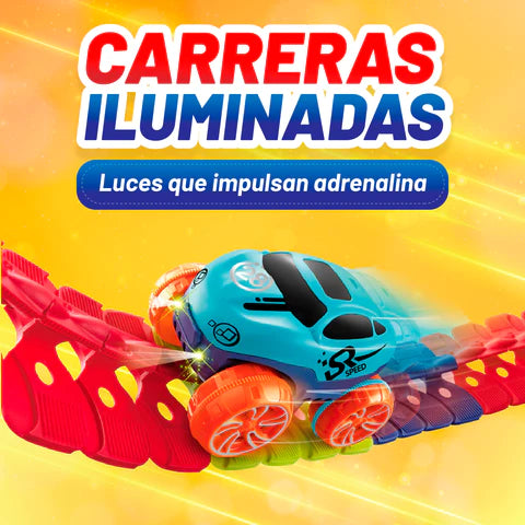 PISTA DE CARROS FLEXIBLE CON LUZ (2 CARRITOS) - JUGUETE TENDENCIA