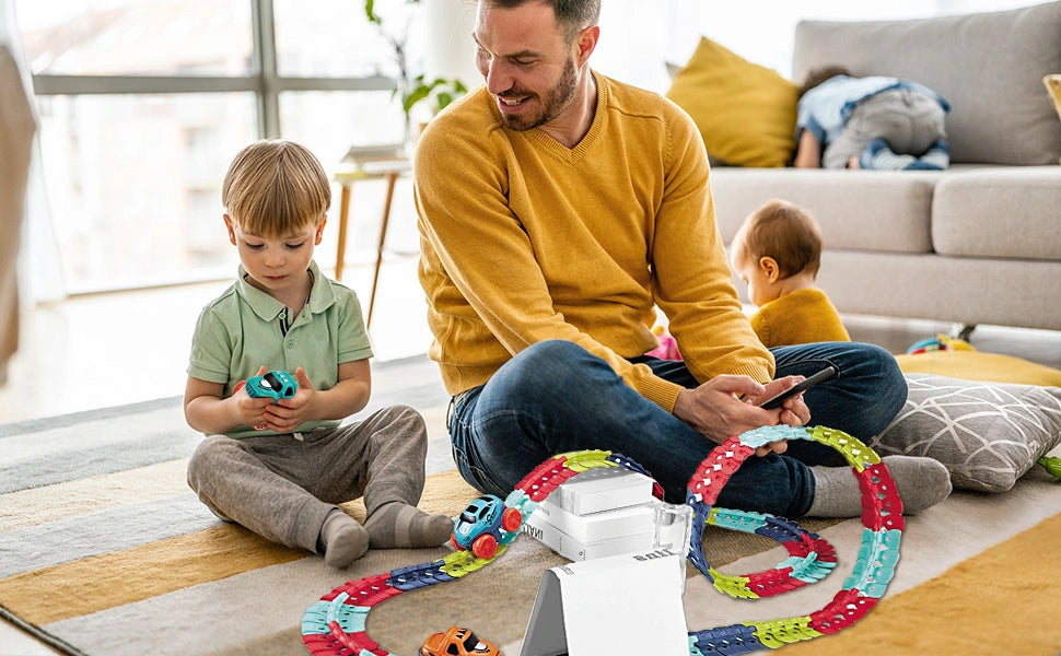 Deja que tu hijo use cualquier espacio de la casa para crear pistas que le darán horas y horas de diversión! 🏎️