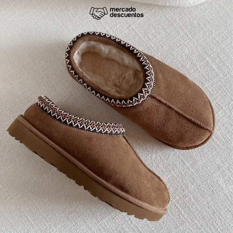 Están fabricadas con materiales sintéticos de alta calidad, con forro interior tipo borreguito ultra suave y suela antideslizante de goma EVA. Son duraderas, térmicas y muy cómodas.