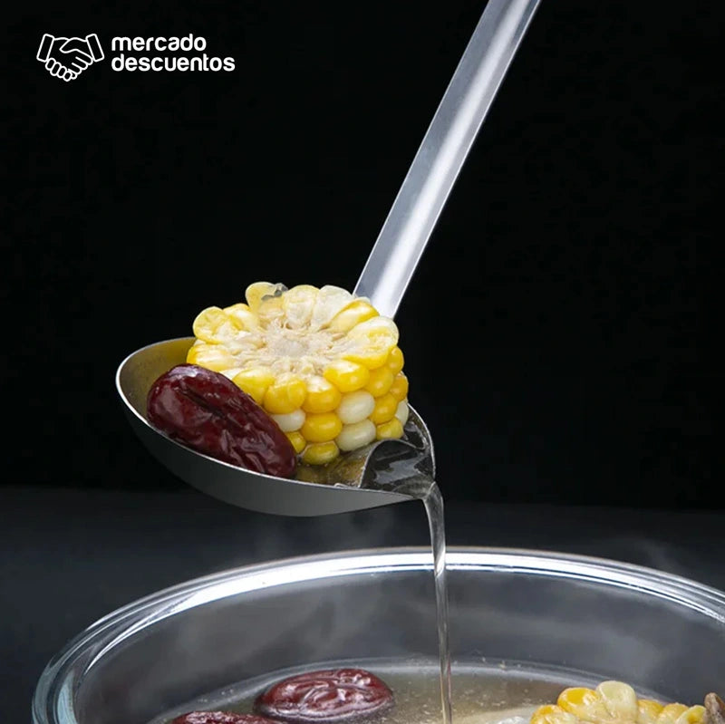 Hecha de acero inoxidable de alta calidad, es duradera, fácil de limpiar y ergonómica. Además, su diseño versátil la hace ideal para sopas, guisos y frituras.